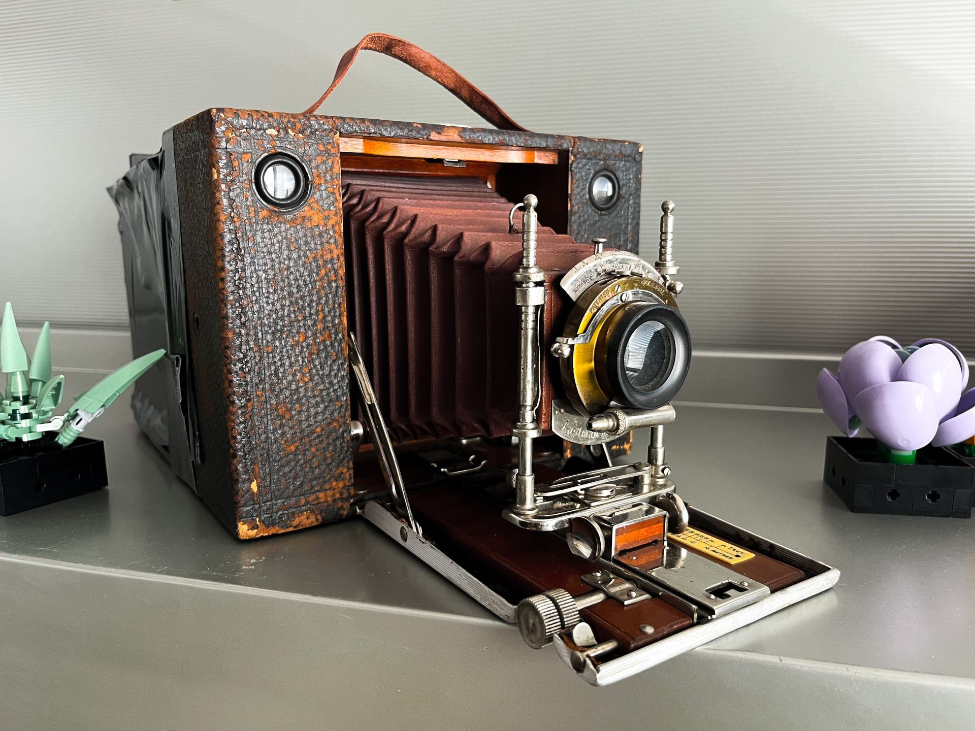 At the end of the month, I think I got some fun shots. Using this camera was a bit of a pain. It's big, heavy, and uncomfortable to lug around, which limited my shots to parking lots and our apartment complex. It's a film camera, but ironically I used the camera on my iPhone to take the shots, so the accuracy of this to what you'd see in 1904 is pretty low. In the future, I would certainly like to make the rear setup better. I think there's something here, but it's hidden behind a really cumbersome beast of a wooden box.